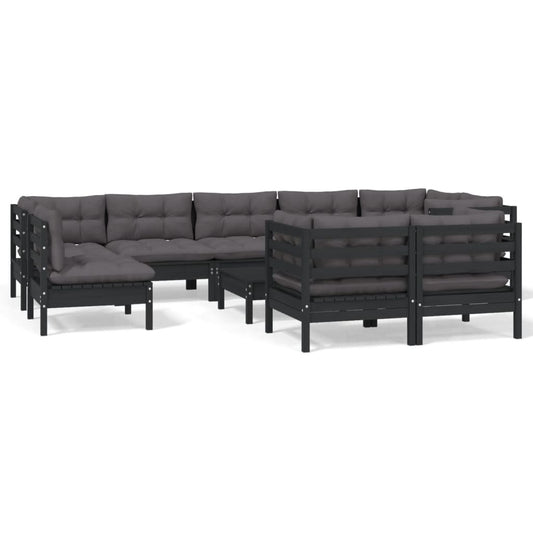 10-tlg. Garten-Lounge-Set mit Kissen Schwarz Kiefernholz