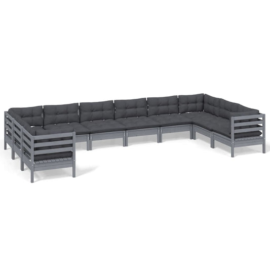 10-tlg. Garten-Lounge-Set mit Kissen Grau Kiefer Massivholz