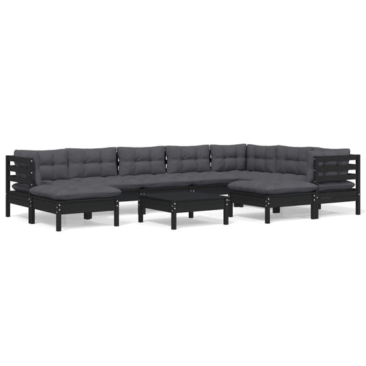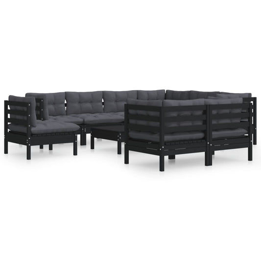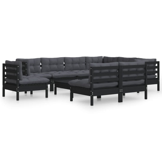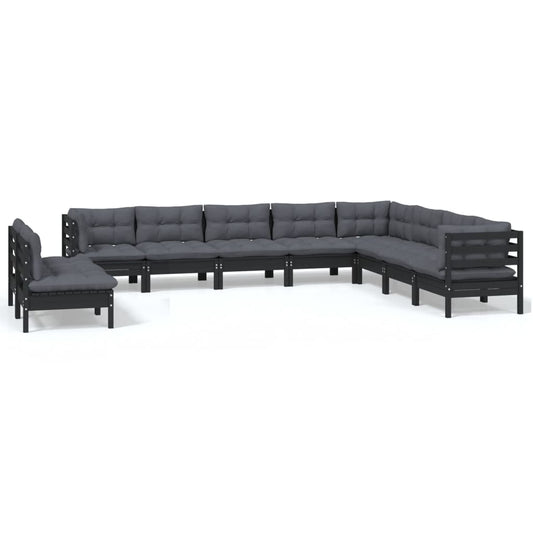 10-tlg. Garten-Lounge-Set mit Kissen Schwarz Kiefer Massivholz