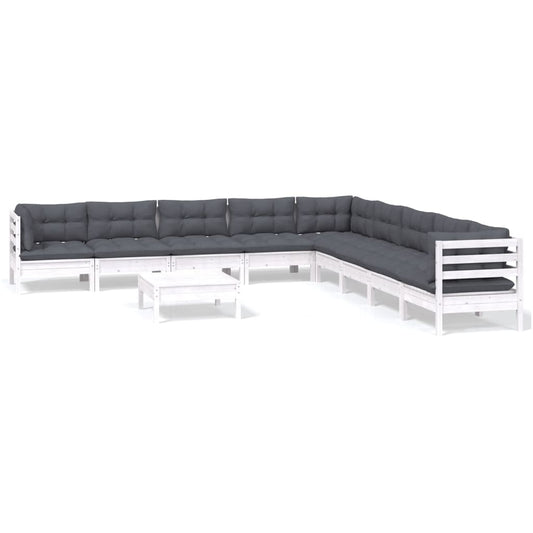 10-tlg. Garten-Lounge-Set mit Kissen Weiß Kiefer Massivholz