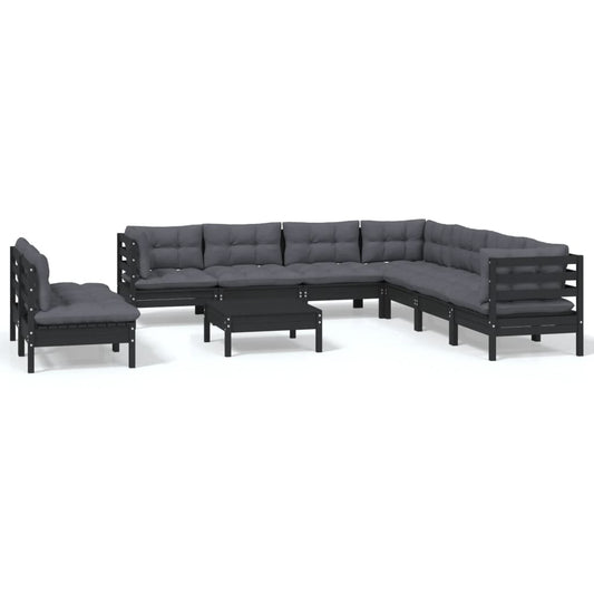 10-tlg. Garten-Lounge-Set mit Kissen Schwarz Massivholz Kiefer