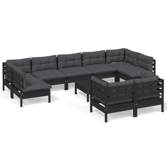 10-tlg. Garten-Lounge-Set mit Kissen Schwarz Kiefernholz