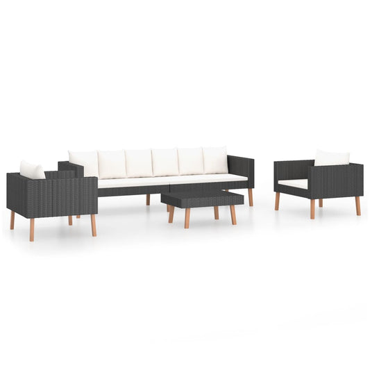 4-tlg. Garten-Lounge-Set mit Kissen Poly Rattan Schwarz