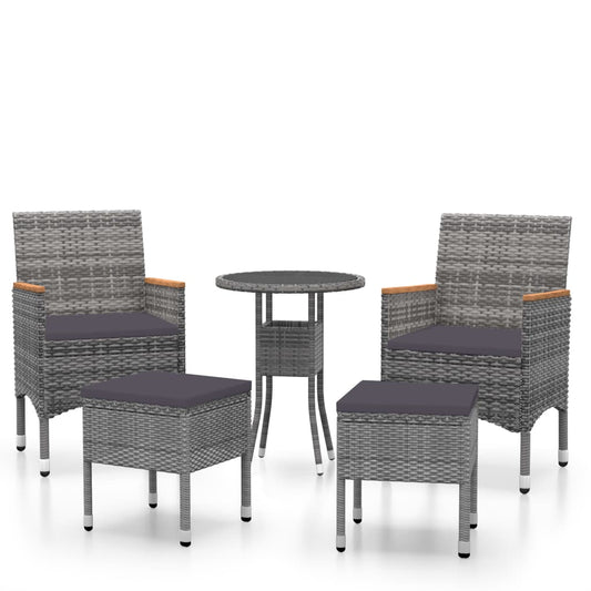 5-tlg. Garten-Lounge-Set Schwarz und Grau Poly Rattan