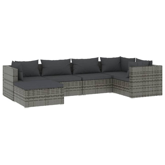 6-tlg. Garten-Lounge-Set mit Kissen Poly Rattan Grau