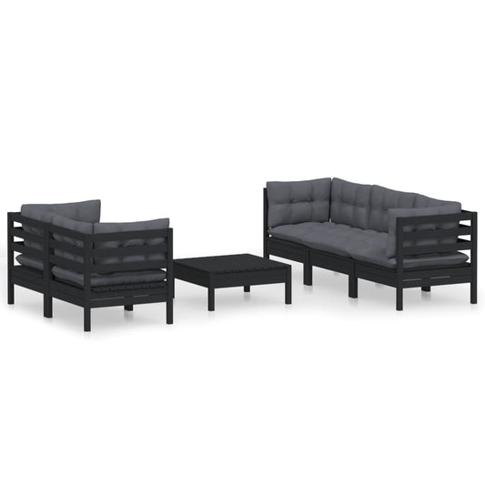 6-tlg. Garten-Lounge-Set mit Kissen Schwarz Kiefer Massivholz