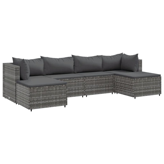 6-tlg. Garten-Lounge-Set mit Kissen Grau Poly Rattan