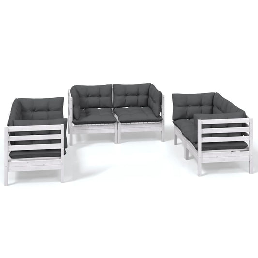 6-tlg. Garten-Lounge-Set mit Kissen Weiß Kiefer Massivholz