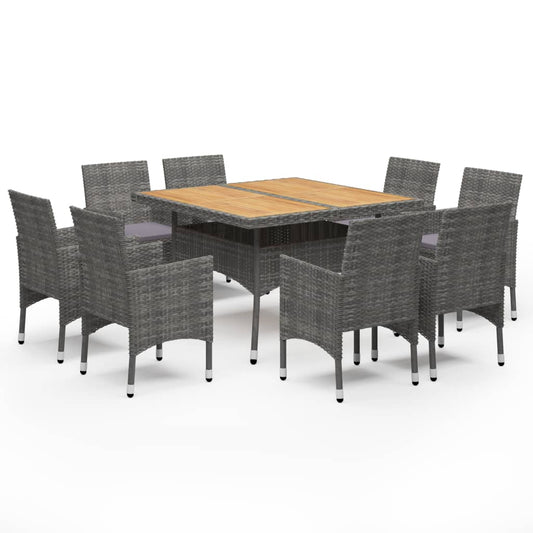 9-tlg. Garten-Essgruppe Poly Rattan und Akazienholz Grau