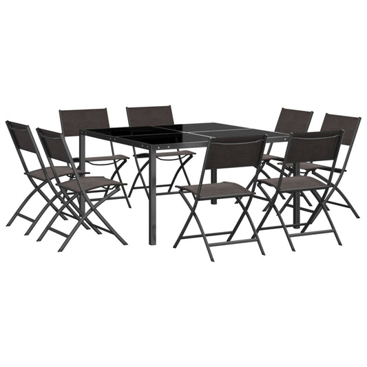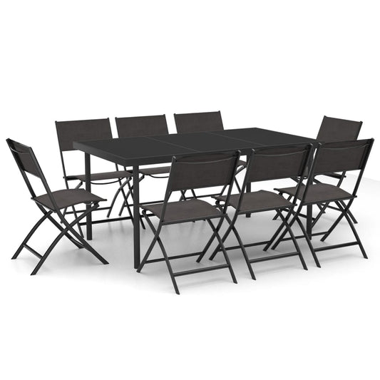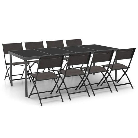 9-tlg. Garten-Essgruppe Baumwollseil und Stahl Schwarz