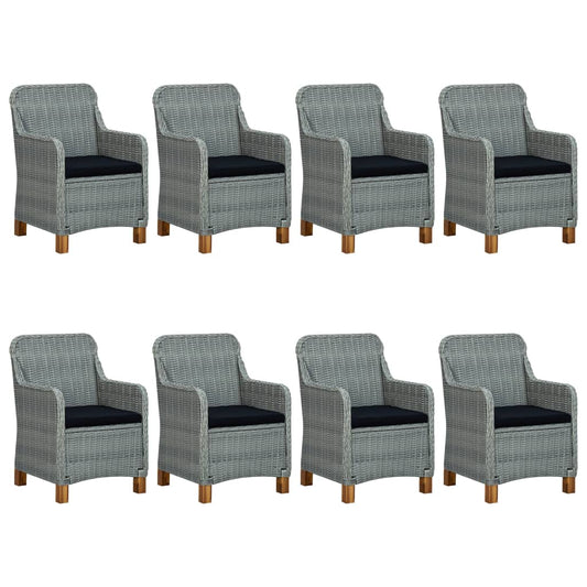 9-tlg. Garten-Essgruppe mit Auflagen Poly Rattan Hellgrau