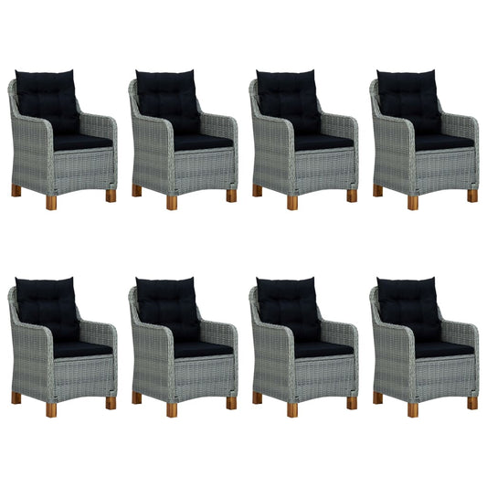 9-tlg. Garten-Essgruppe mit Auflagen Poly Rattan Dunkelgrau