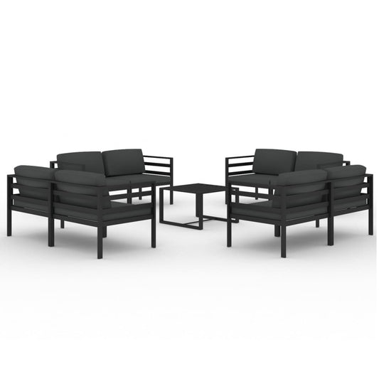 9-tlg. Garten-Lounge-Set mit Kissen Aluminium Anthrazit