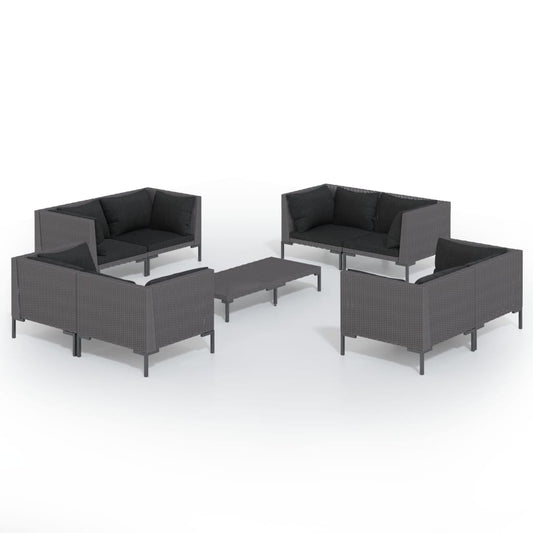9-tlg. Garten-Lounge-Set mit Kissen Poly Rattan Dunkelgrau
