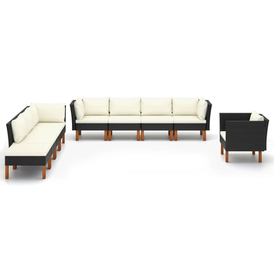 9-tlg. Garten-Lounge-Set mit Kissen Poly Rattan Schwarz