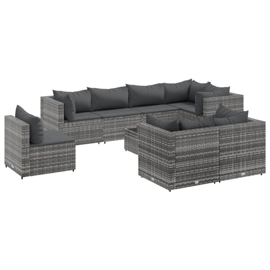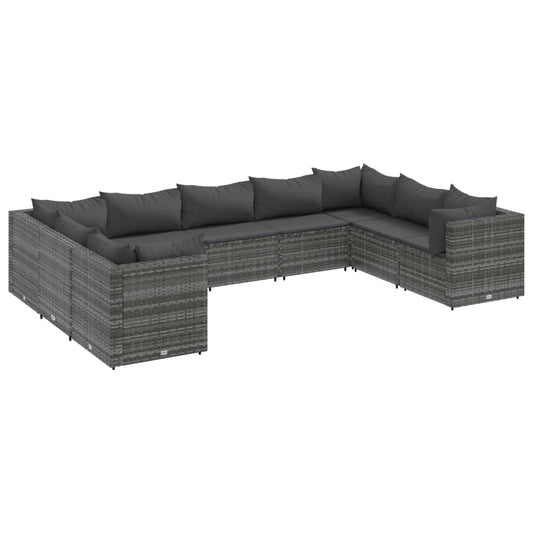 9-tlg. Garten-Lounge-Set mit Kissen Grau Poly Rattan