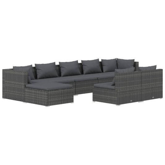 9-tlg. Garten-Lounge-Set mit Kissen Grau Poly Rattan