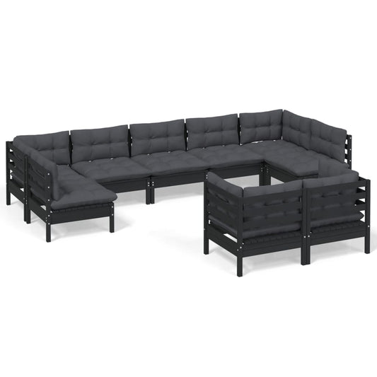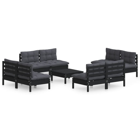 9-tlg. Garten-Lounge-Set mit Kissen Schwarz Kiefernholz