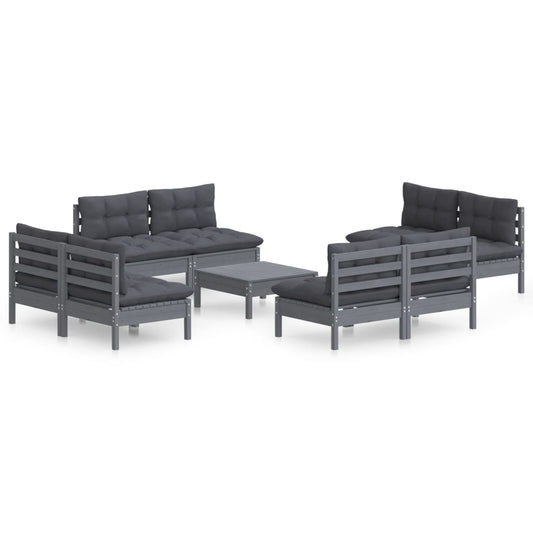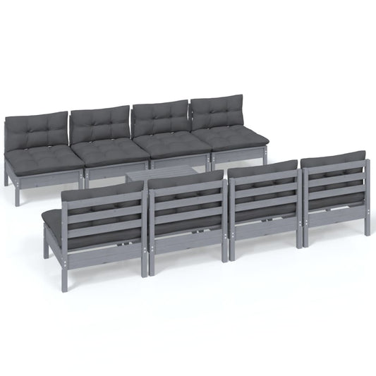 9-tlg. Garten-Lounge-Set mit Kissen Grau Kiefernholz