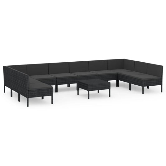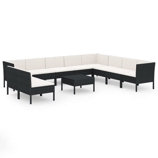 11-tlg. Garten-Lounge-Set mit Auflagen Poly Rattan Schwarz