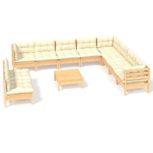 11-tlg. Garten-Lounge-Set mit Creme Kissen Kiefernholz
