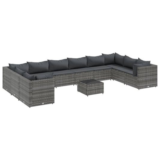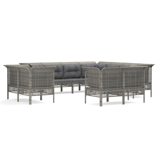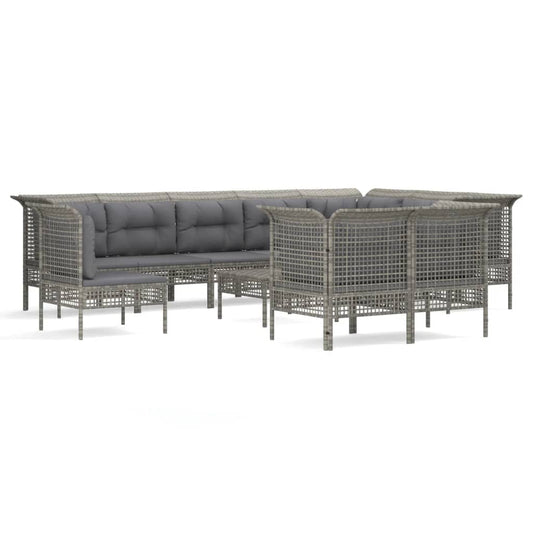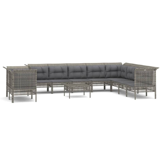 11-tlg. Garten-Lounge-Set mit Kissen Grau Poly Rattan