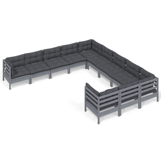 11-tlg. Garten-Lounge-Set mit Kissen Grau Kiefer Massivholz