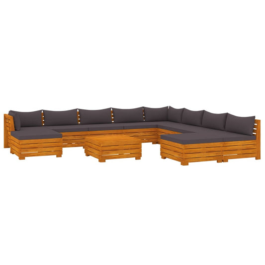 11-tlg. Garten-Lounge-Set mit Kissen Massivholz Akazie