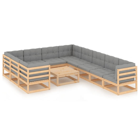 11-tlg. Garten-Lounge-Set mit Kissen Kiefer Massivholz