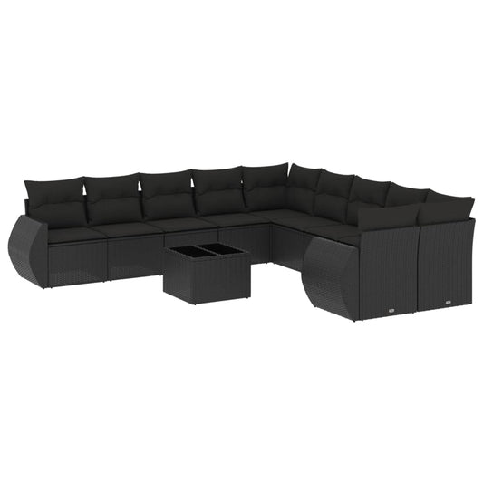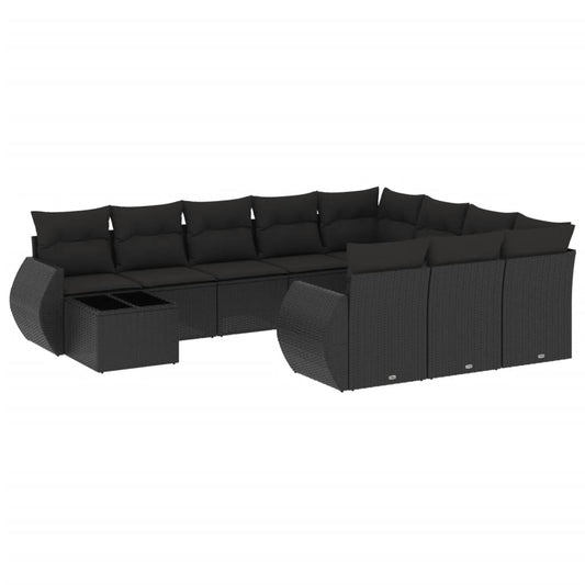 11-tlg. Garten-Sofagarnitur mit Kissen Schwarz Poly Rattan