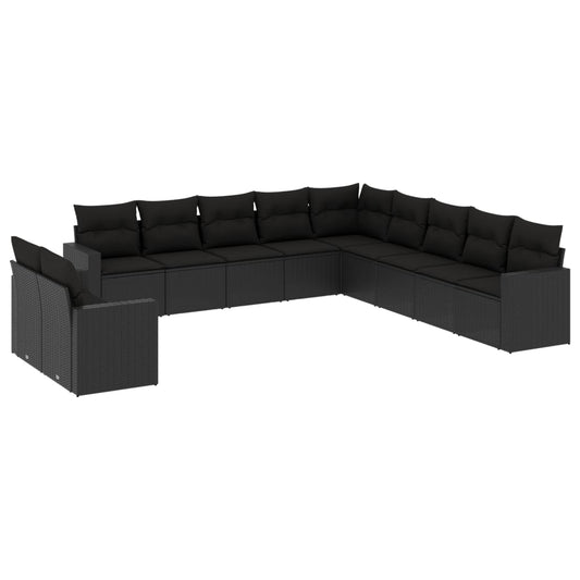 11-tlg. Garten-Sofagarnitur mit Kissen Schwarz Poly Rattan