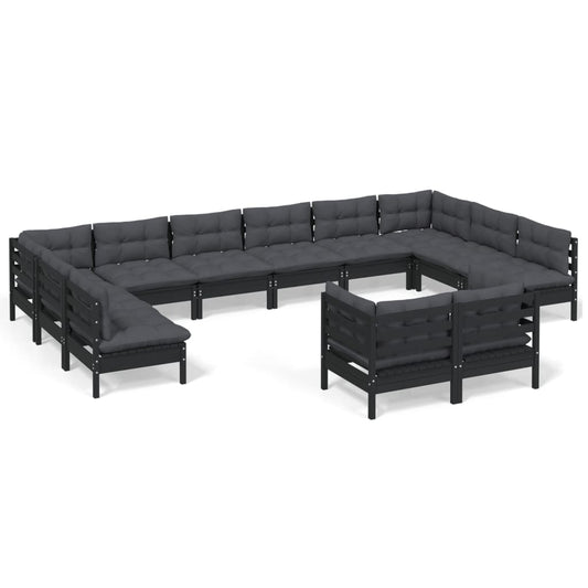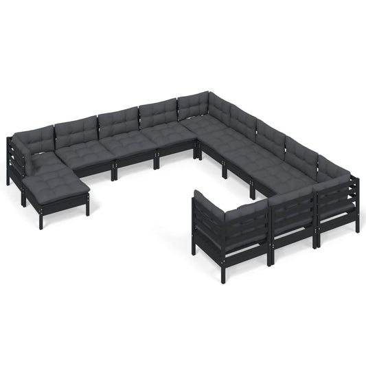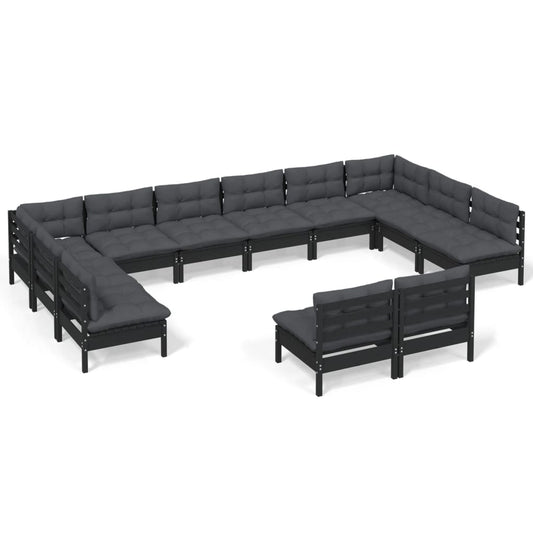 12-tlg. Garten-Lounge-Set mit Kissen Schwarz Kiefernholz