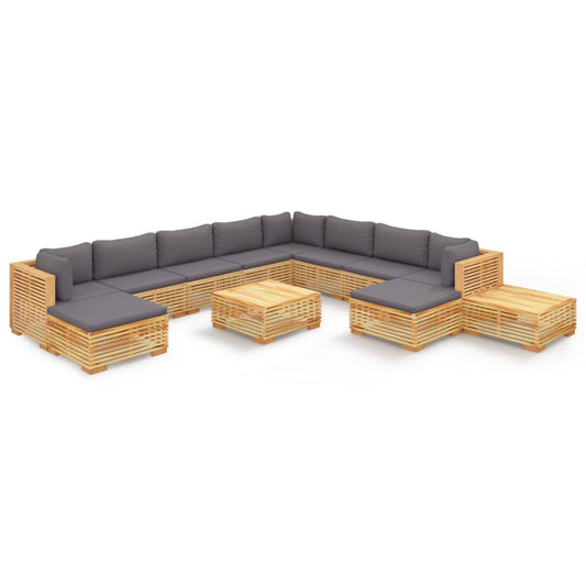 12-tlg. Garten-Lounge-Set mit Kissen Massivholz Teak