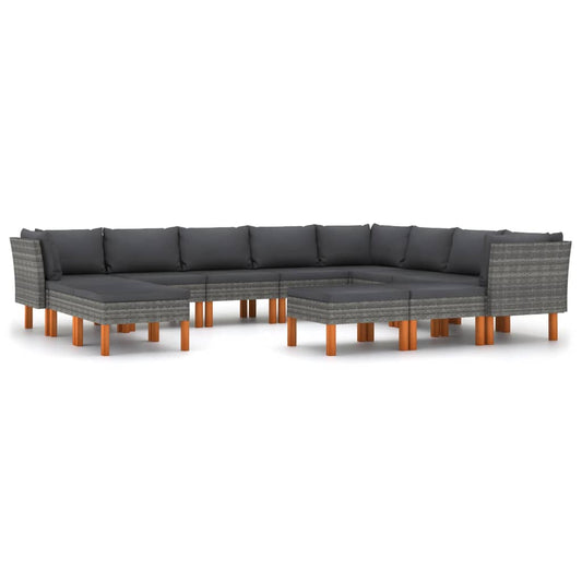 12-tlg. Garten-Lounge-Set mit Kissen Poly Rattan Grau