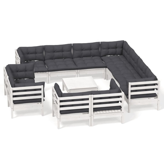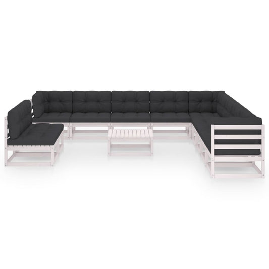 12-tlg. Garten-Lounge-Set mit Kissen Weiß Kiefernholz