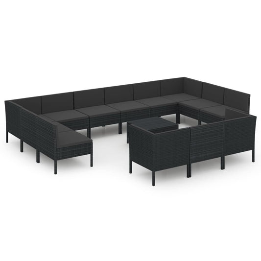 13-tlg. Garten-Sofagarnitur mit Kissen Schwarz Poly Rattan