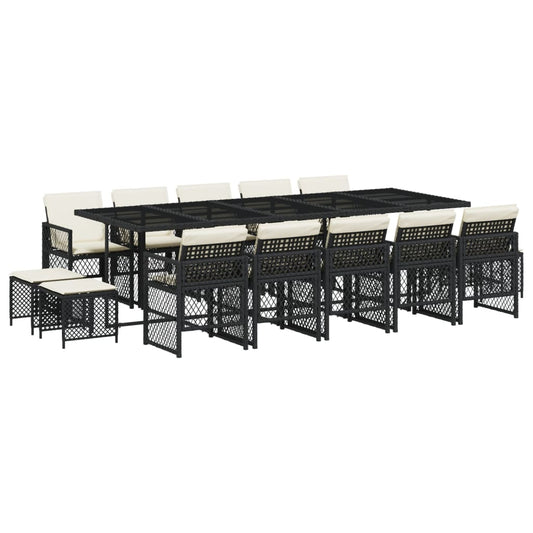 15-tlg. Garten-Essgruppe mit Kissen Schwarz Poly Rattan