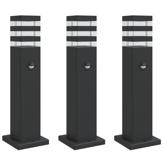 Wegeleuchten mit Bewegungsmelder 3 Stk. Schwarz 50 cm Aluminium