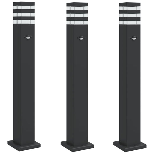Wegeleuchten mit Bewegungsmelder 3 Stk. Schwarz 80 cm Aluminium