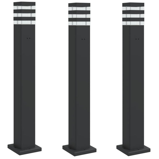 Wegeleuchten mit Steckdose 3 Stk. Schwarz 80 cm Aluminium