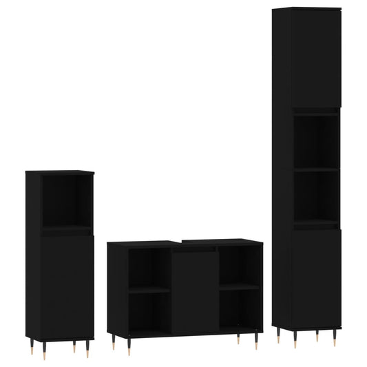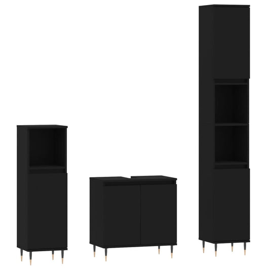 Ausverkauft3-tlg. Badmöbel-Set Schwarz Holzwerkstoff