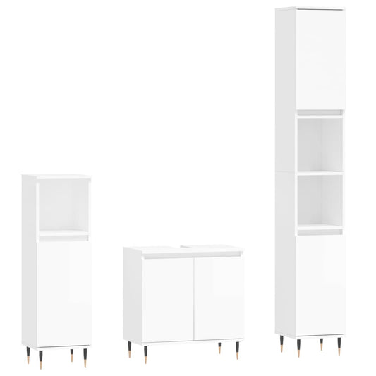 Ausverkauft3-tlg. Badmöbel-Set Hochglanz-Weiß Holzwerkstoff