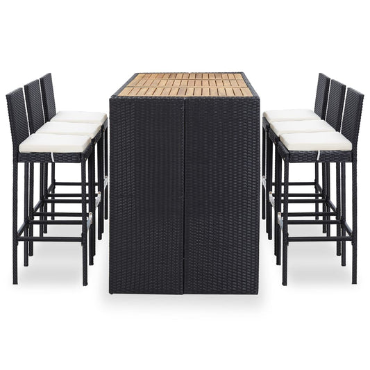 8-tlg. Gartenbar-Set mit Kissen Poly Rattan Schwarz