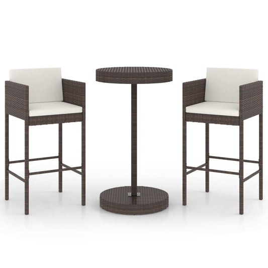 3-tlg. Gartenbar-Set mit Kissen Poly Rattan Braun