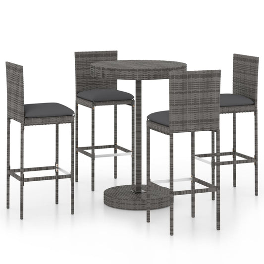 Ausverkauft5-tlg. Gartenbar-Set mit Kissen Poly Rattan Grau