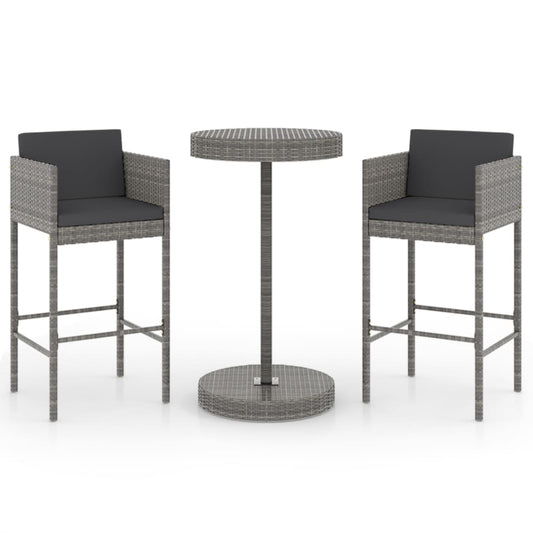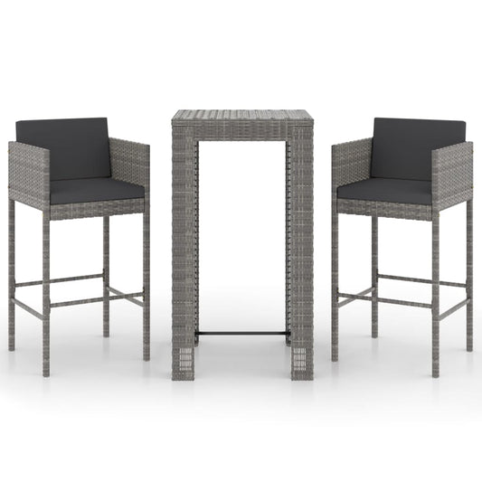 Ausverkauft3-tlg. Gartenbar-Set mit Kissen Poly Rattan Grau