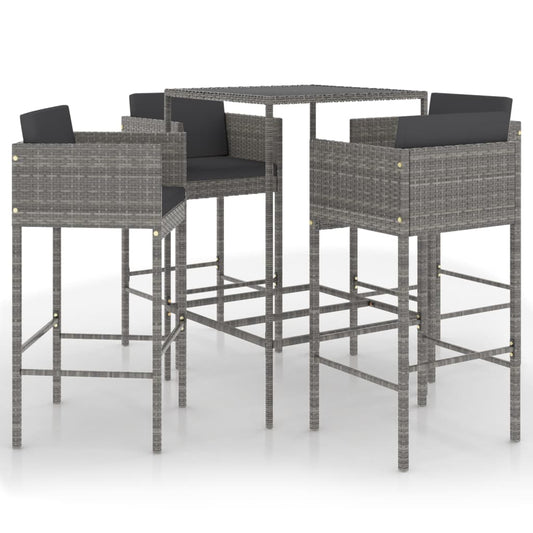 Ausverkauft5-tlg. Gartenbar-Set mit Kissen Poly Rattan Grau