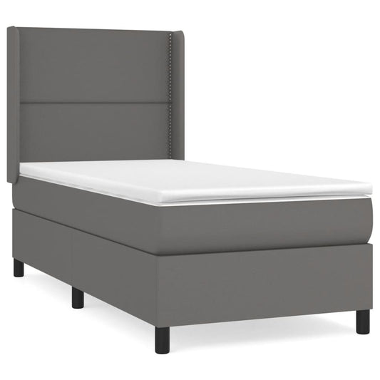 Boxspringbett mit Matratze Grau 90x200 cm Kunstleder