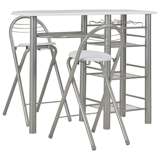 3-tlg. Klappbare Essgruppe mit Ablagefach MDF und Stahl Weiß