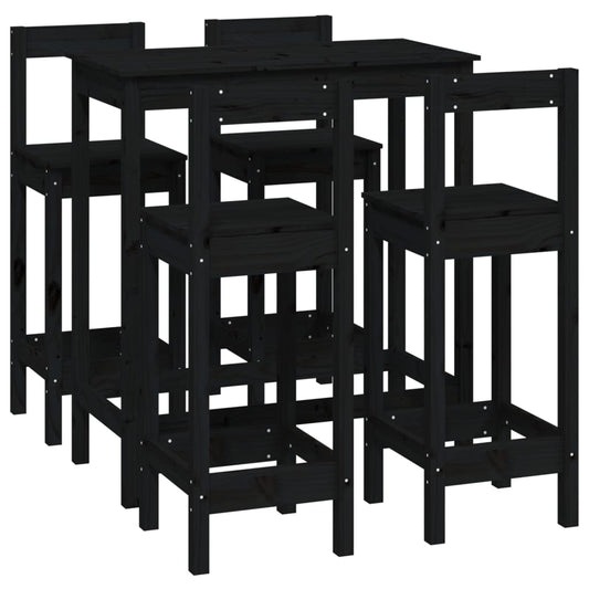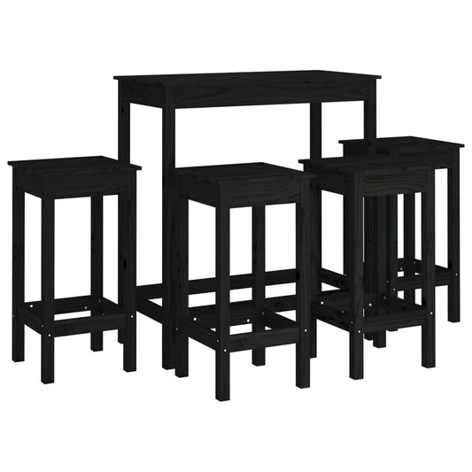 Ausverkauft5-tlg. Bar-Set Schwarz Massivholz Kiefer